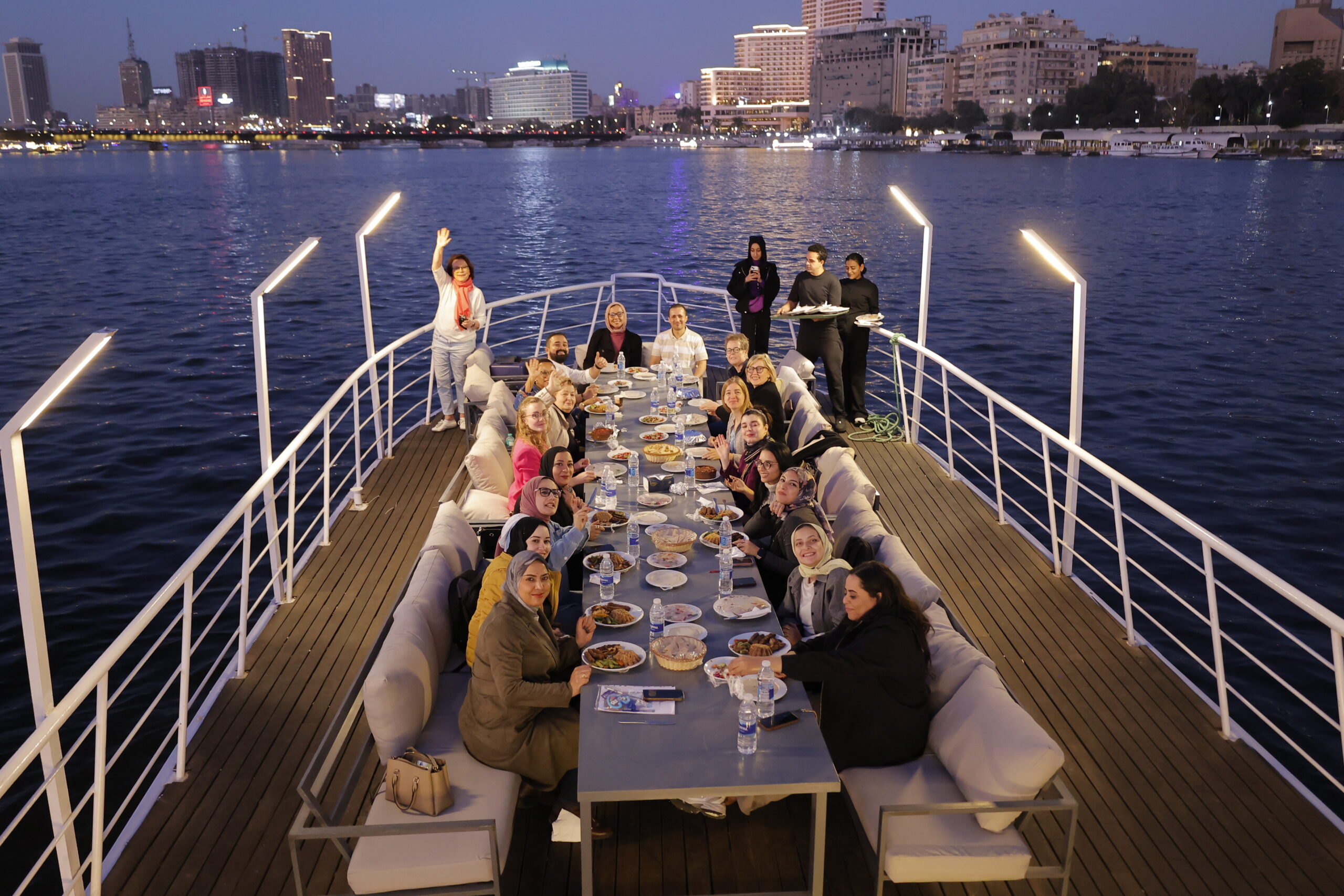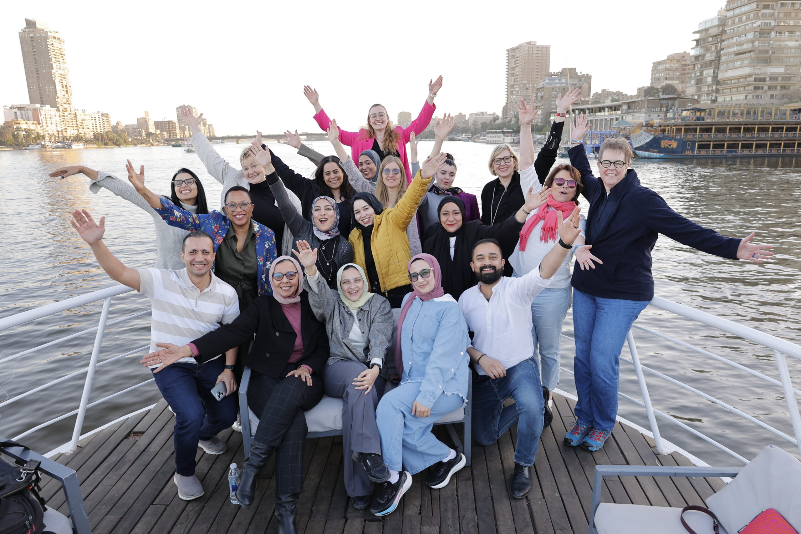 The second day was filled with a different kind of adventure! A The second day was dedicated to strengthening leadership skills and teamwork. Participants worked intensively within their Growth Teams during the “Leadership Essentials” sessions, designed to enhance their leadership capacities and collaborative approaches. After lunch, the workshops continued with a dedicated session for Growth Team work, giving participants the opportunity to deepen their connections, exchange ideas, and prepare for the final presentations scheduled for the following day. The evening offered a magical highlight: a Nile River cruise on the iconic Nile River, where participants enjoyed breathtaking nighttime views of Cairo while reflecting on the day’s experiences.