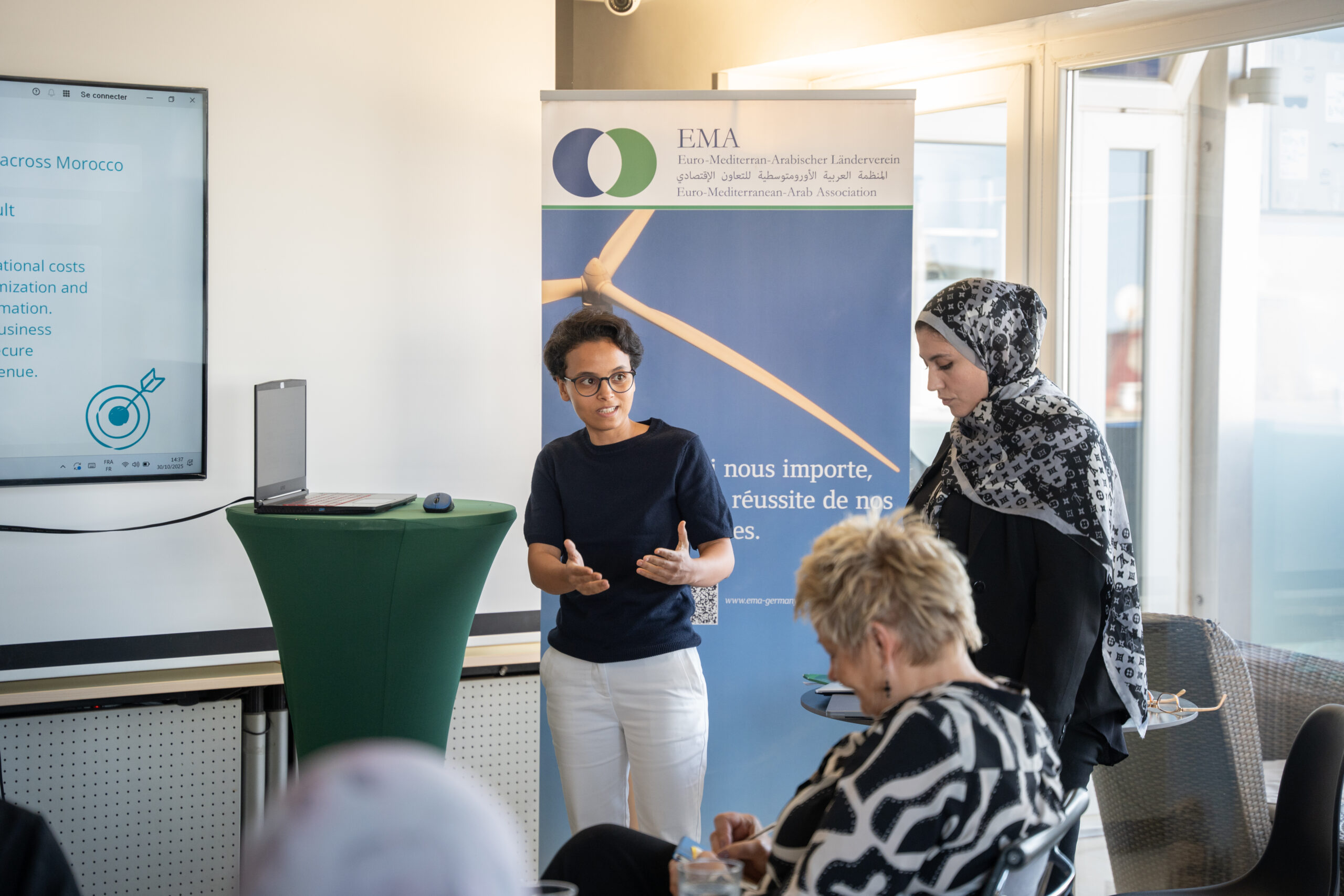 On the third and unfortunately the last day, a former participant, Laila Berchance, CEO and Co-Founder of Robots & More, shared her journey as OUISSAL alumna, underscoring the long-term value and success of the program. After this, the Growth Team dug deeper into strategy work, fostering connection and collaboration. A shared lunch at the German Business Center preceded the final workshop, where each group delivered a pitch of their business plans and strategic outlook.